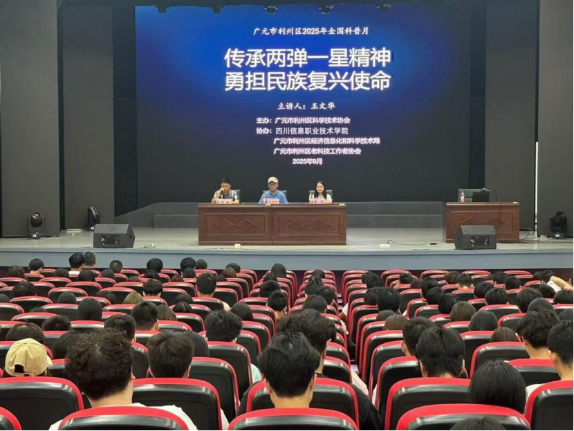 9月13日,在全国科普月活动开展之际,在广元市利州区科学技术协会的大力支持下,数字经济学院邀请中国核工业集团公司814厂高级工程师、钱学森研究者、科普作家王文华为2025级新生带来了一场“弘扬两弹一星精神,赓续红色基因”的主题讲座。