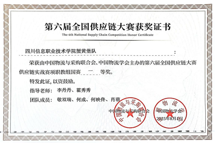 近日,由现代物流管理专业教师李丹丹主持的课题《广元再生铝数字智能绿色三化协同模式与新质生产力创新性研究》(2024KC08)成功实现成果转化,一是以其开发的《智慧供应链管理》课程获评校级课程思政典型案例,成为区域产业与教育协同发展的新标杆。二指导学生参加第六届全国供应链比赛荣获一等奖2项。