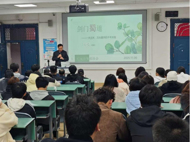 2025年11月6日,数字经济学院在东坝校区教学楼1101教室举办“剑门蜀道”专题讲座。本次讲座由广元市集邮协会任蔚老师主讲,以邮集为载体,系统呈现了蜀道三千年来的历史变迁与文化积淀,为我院师生带来一场别开生面的文化之旅。