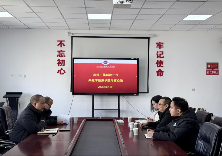 1月6日上午,广元市邮政分公司渠道平台部经理韩刚、广元市邮政市场部邱莉等一行来我院考察交流,学院副院长魏鼎和相关负责人参加座谈。双方围绕直播电商、人才培养等实际议题开展交流。