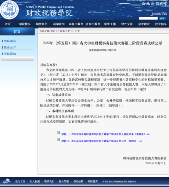 10月16日,由四川省教育厅主办,西南财经大学承办的财务实务技能大赛落下帷幕。大赛面向四川省本科、高职院校在校学生,我校数字经济学院白红梅老师和张黎老师带领的两支学生团队表现优异,均获得二等奖。