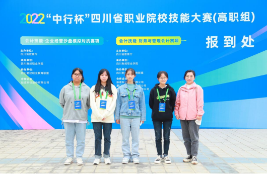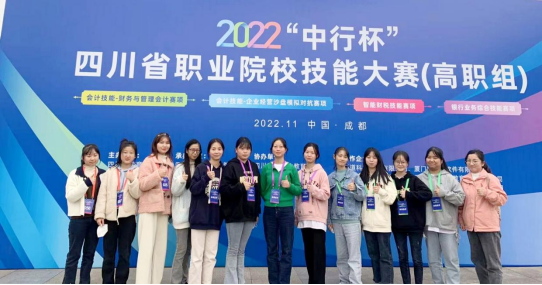 为更好的“传播会计知识,倡导科学理财,培养投资意识”学校2020级会计专业学生王苏琴、邓文静、钟晓梅、邹玉华四位同学在张黎、侯春丽两位老师的带领下参加了四川省教育厅主办,四川财经职业技术学院承办的(9月11日-9月12日)2022“中行杯”四川省职业院校技能大赛会计技能-财务与管理会计赛项。