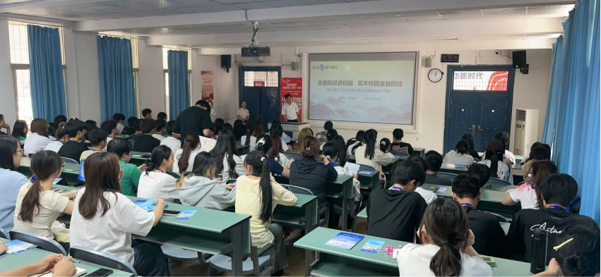 为提升大学生金融风险防范意识,5月24日数字经济学院联合四川银行在东坝校区1101教室举办“金融知识进校园 筑牢校园金融防线”主题讲座,向学生普及金融安全知识。