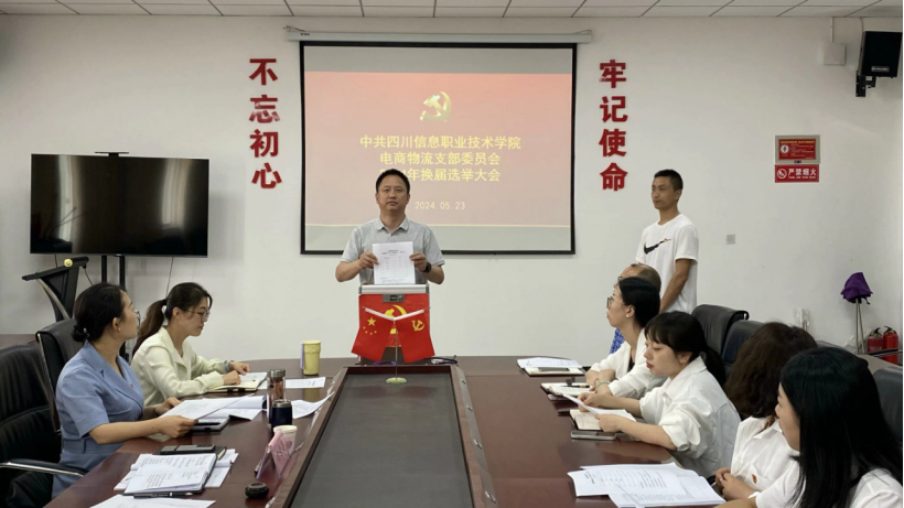 2024年5月23日下午,中共四川信息职业技术学院电商物流支部委员会换届选举大会顺利召开,选举产生了新一届支部委员会委员,学校党委书记郑学奇参加会议并讲话。会议由电商物流党支部书记李娟主持,支部全体党员参加。