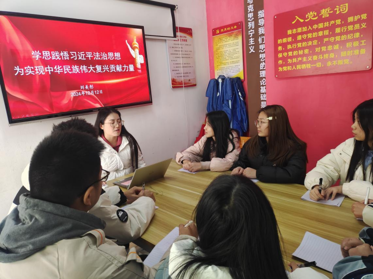 2024年12月11日,东坝校区的入党积极分子在东坝党员活动站聆听马克思主义学院刘美彤老师讲授的主题党课,党课主题为《学思践悟习近平法治思想 为实现中华民族伟大复兴贡献力量》。