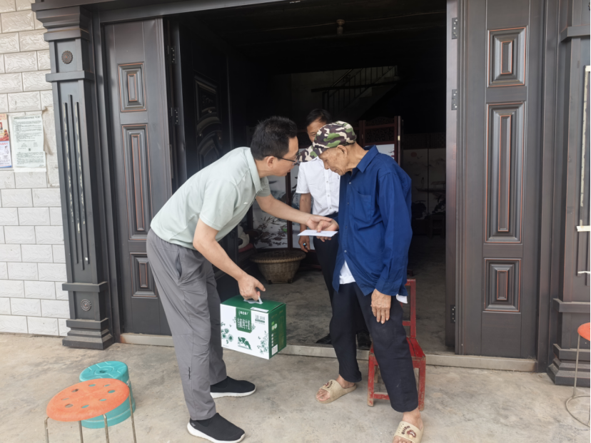 活动最后,学院领导及师生党员分组深入老党员和困难群众家中,送上组织的关怀与生活物资。更以“以购代捐”的暖心方式,现场采购村民自产的蔬菜、禽蛋、菜籽油等农产品。这一笔笔交易,饱含着支持与情谊,既缓解了农产品销售之忧,也精准助力村民增收。