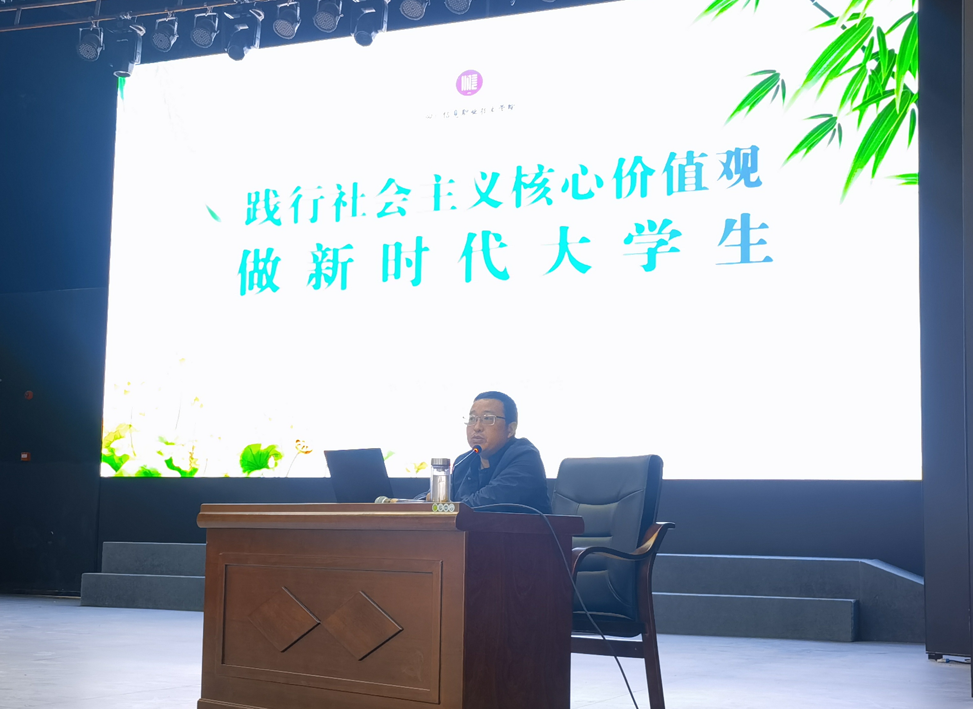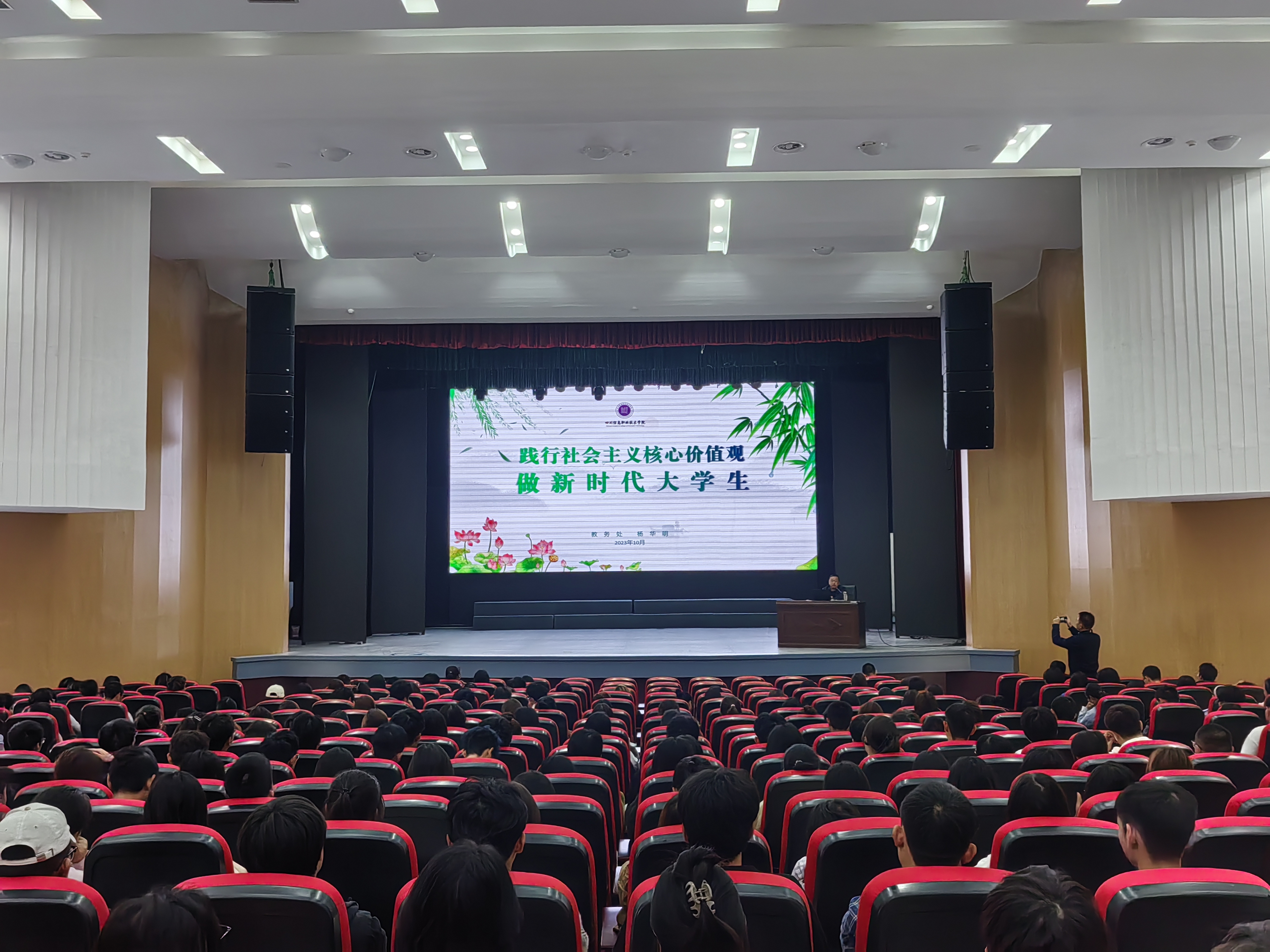 10月12日下午,数字经济学院在东坝校区礼堂举办《践行社会主义核心价值观做新时代大学生》为主题的第三期“经”彩讲坛。本次讲座由学校纪委委员、校长助理、教务处处长杨华明主讲,学院党总支书记张健华主持。全体23级学生参加讲座。