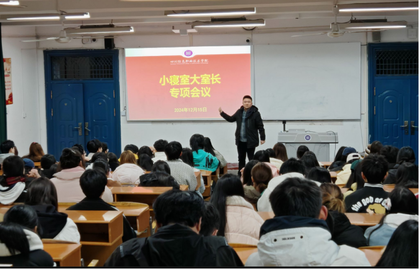 12月15日,数字经济学院在1201教室开展了“小寝室 大室长”专题活动。学院党总支负责人、全体辅导员和全体学生寝室室长参加了此次会议。活动中辅导员张渝乾、付玏分别就寝室心理问题的关心与干预和寝室关系及矛盾处置等进行了分享。学生代表作和谐寝室你我共创的分享。