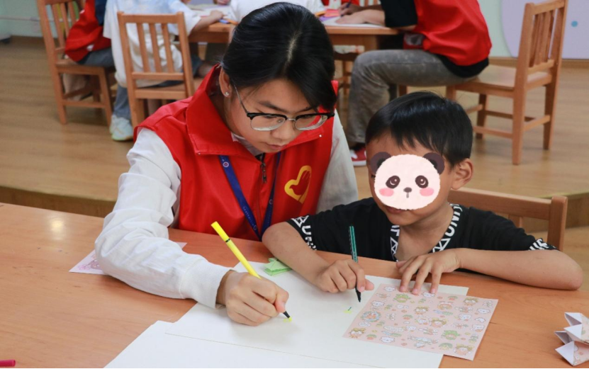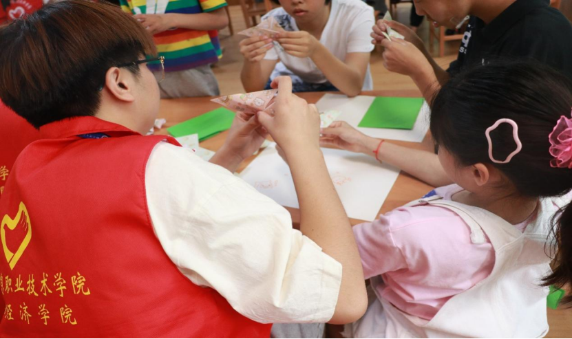 活动现场,志愿者们准备了丰富的绘画工具和色彩绚丽的折纸材料,通过绘画创作、手工折纸、趣味游戏等方式,与20余名儿童共度温馨时光。在互动过程中,志愿者们用心传递温暖与关怀,现场不时响起阵阵欢声笑语,小朋友们的脸上洋溢着纯真的喜悦,整个活动现场被爱与欢乐的氛围所包围。
