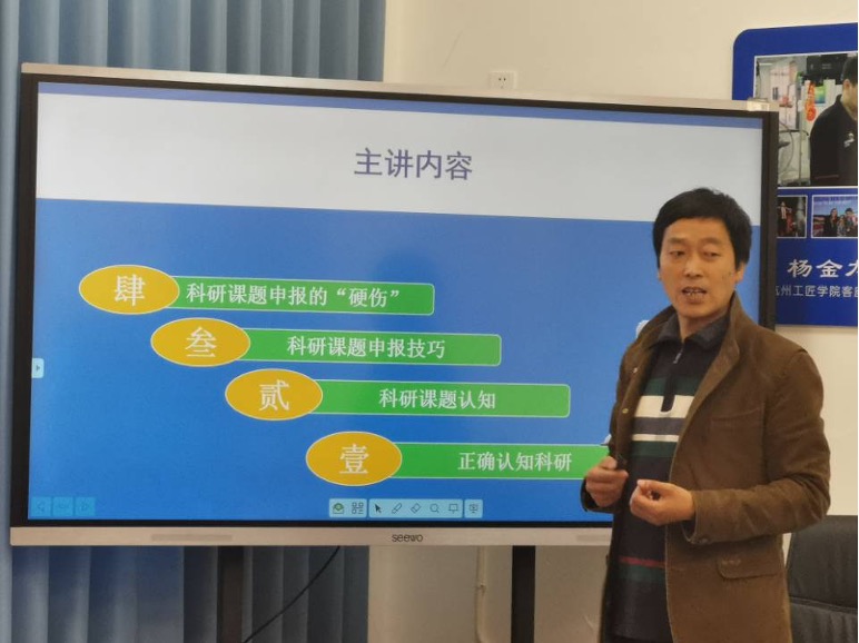 王克军针对与会教学部门的专业建设现状及发展需求、教师教学需要及科研能力实情、中职教育及科研实际情况,从正确认知科研、科研课题认知、科研课题申报技巧、科研课题申报的“硬伤”四个方面开展了系统讲座,并对正在申报的课题组提供了现场咨询与指导。讲座效果得到对方学校及与会人员的高度认可。