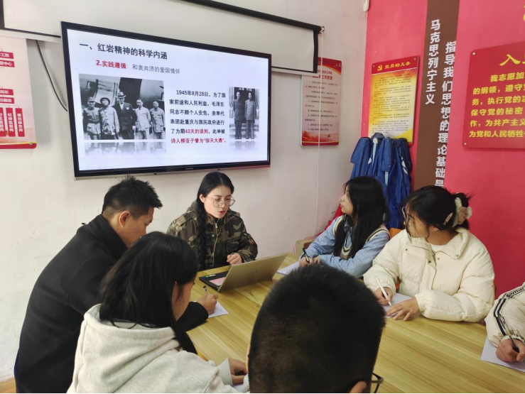 党课讲授中,刘美彤老师首先介绍了红岩精神的历史背景,她提到,红岩精神是中国共产党在抗日战争和解放战争时期的宝贵精神财富,其次,阐释了红岩精神的深刻内涵,包括坚如磐石的理想信念、和衷共济的爱国情怀、不折不挠的凛然斗志、坚贞不屈的浩然正气。刘老师通过生动的历史故事和感人的人物事迹,将红岩精神诠释得淋漓尽致,让在场的入党积极分子深受触动。最后,还紧密结合当前时代特点,引导大家思考如何将红岩精神传承和发扬下去。她指出,作为新时代的青年,入党积极分子们应该继承和弘扬红岩精神中的忠诚、担当和奉献品质,积极投身到国家和社会的发展中去,为实现中华民族伟大复兴的中国梦贡献自己的力量。